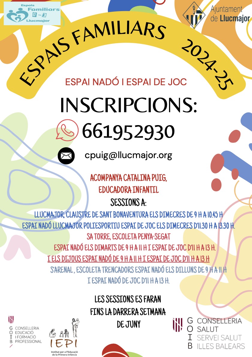 Si en voleu més informació podeu trucar al telèfon 661952930 o bé escriure a l’adreça electrònica cpuig@llucmajor.org