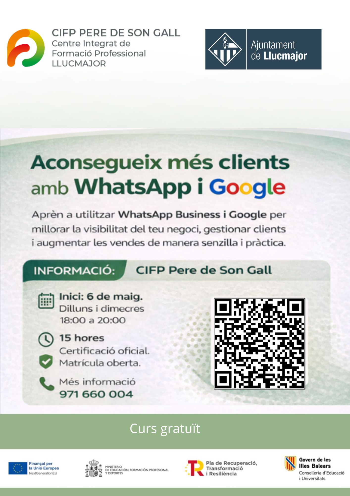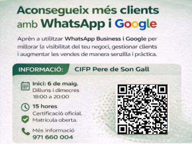 Aprèn a utilitzar WhatsApp Business i Google per millorar la visibilitat del teu negoci, gestionar clients i augmentar les vendes de manera senzilla i pràctica.