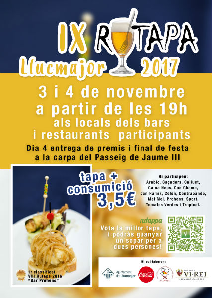 La Rutapa de Llucmajor arriba a la novena edició amb la participació de 13 bars i restaurants, que prepararan més de 20.000 tapes per servir els pròxims dies 3 i 4 d'octubre a partir de les 19.00 hores.