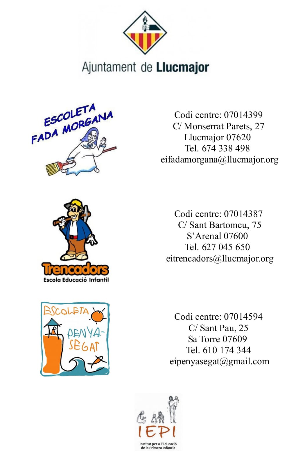 Aquí encontrareis los contactos de las diferentes escoletas municipales de Llucmajor.